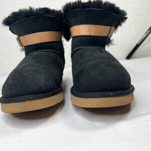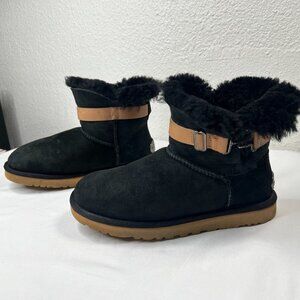 UGG Aurelyn Ankle Boots Booties Faux Fur Suede Black Tan US Womens 7