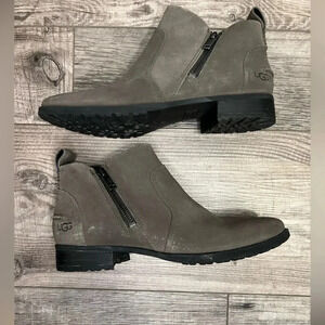 UGG Aureo II Boots Womens 8 Gray Ankle Booties Leather Zip Round Toe winter shoe