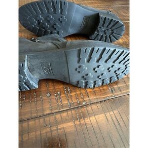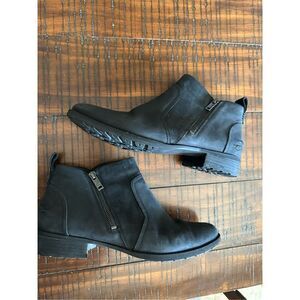 UGG Aureo 2 black nubuck leather waterproof lined ankle boots, side zipper back pull tabs sz 11 excellent condition