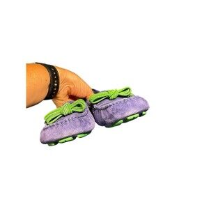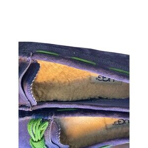 The UGG Australia 1003739 Meena Driving Moccasins in Blue are stylish slip-on shoes designed for women in a size 6. These moccasins feature a solid blue color, round toe shape, and bow accents, making them perfect for casual, activewear, or travel occasions. Made with high-quality leather and lined with cozy sheepskin, these moccasins offer both comfort and style. The Bohemian and cabincore themes combined with the shearling material make them a versatile and trendy choice for all seasons.