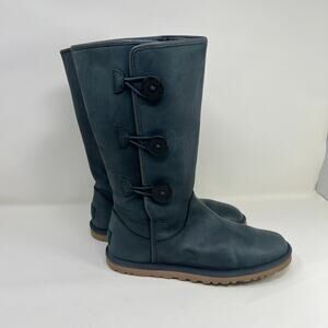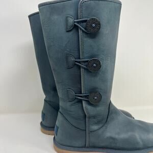 UGG Australia Annarosa 1005857 Suede Blue Boots with Three Buttons, Smooth Textile Lining Size 7