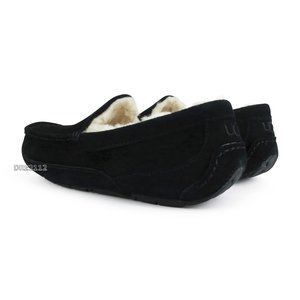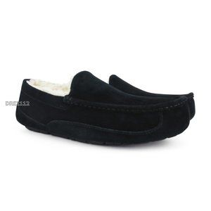 UGG Australia Ascot Black Suede Fur Slippers Mens Size 10 NEW