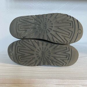 UGG Australia Bailey 3 button boots in gray, suede with sheepskin lining, size 7. These preowned boots are in fair to good condition. There is some wear on the toe area and one of the top buttons is broken but still closes. See last photo.