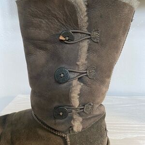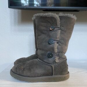 UGG Australia Bailey Button Triplet Tall Gray Suede Boots Size 7