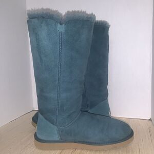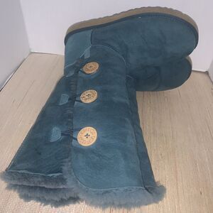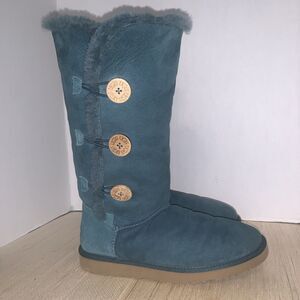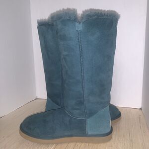 UGG Australia Bailey Button Triplets Womens 10 Teal Green Sheepskin Leather Tall