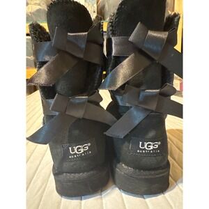 UGG Australia Black Suede Leather Bow Back Winter Boots Womens