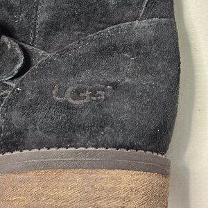 UGG Australia Black Suede Leather Shearling Zip Mid Calf Boots Women's Size 6
