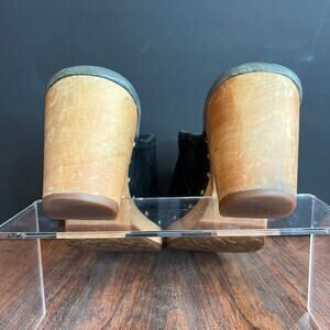 UGG Australia Black Suede Leather Studded Wood Heel Platform Clogs Mules