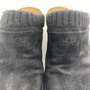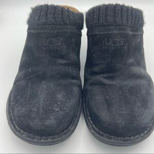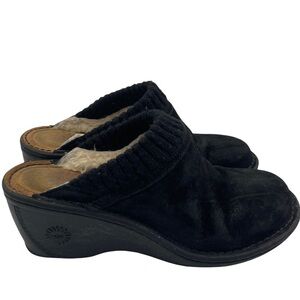 UGG Australia Black Suede Shearling Wedge Clogs Slip on Mules Sz 7