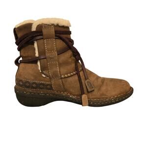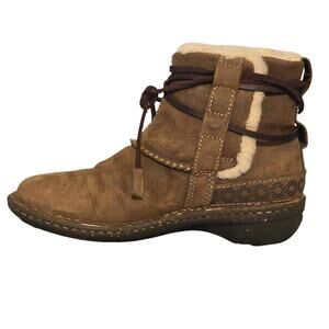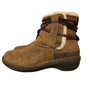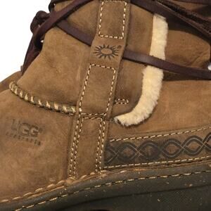 UGG Australia Boots Womens 6 Cove Toast Ankle Booties Wrapped Laces Sheepskin