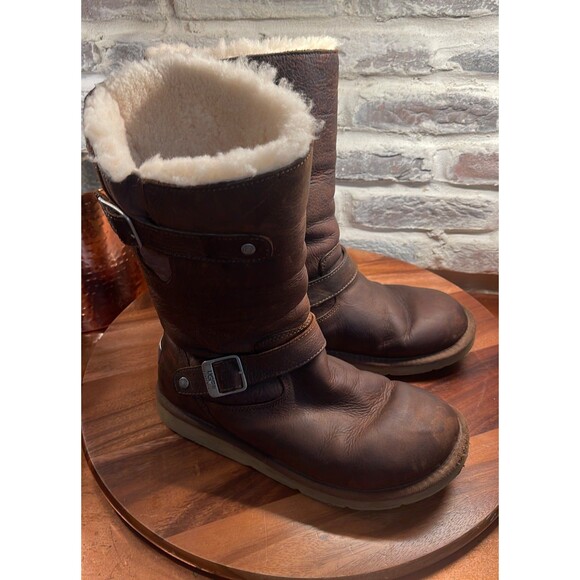 Worn about 5x. Great for snow and warm. All leather and shearling perfect socks worn with.