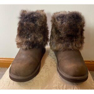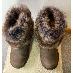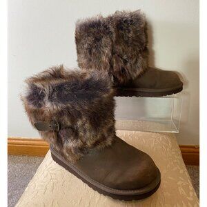 UGG Australia Brown Shearling & Leather Fur-Lined Winter Boots Size 4