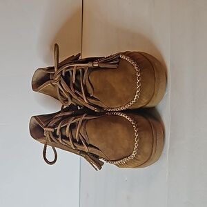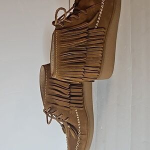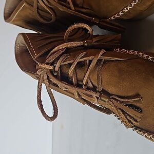 UGG Australia Caleb Chestnut Nubuck Fringe Bootie sz US 10 Pre-owned like new condition