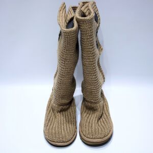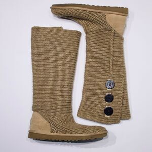 UGG Australia Cardy Beige Knit Button Up Sweater Winter Snow Boots Women Size 7