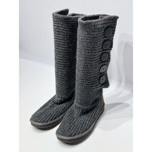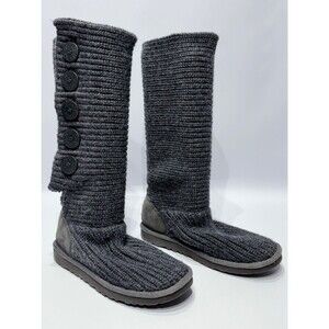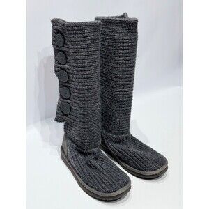 UGG Australia Cardy Dark Gray Knit Button Up Sweater Winter Snow Boots Women's 8