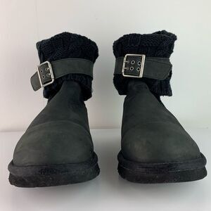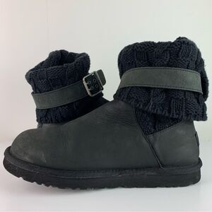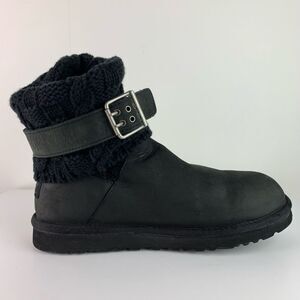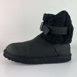 UGG Australia Cassidee Short Suede Leather Knit Black Boot with buckle size 9