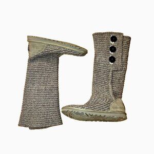 UGG Australia Classic Cardy Boots Women’s Size 6 Gray Knit Button 5819