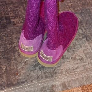 UGG Australia Classic Cardy Women's 7 Knit Sweater Pink Woven Button Boots 5819