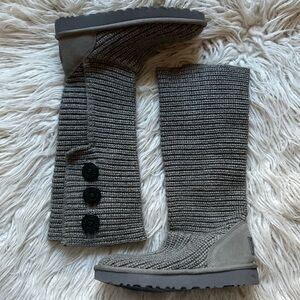UGG Australia Classic Gray Cardy Winter Wool Knit Button Boots EUC Size 6