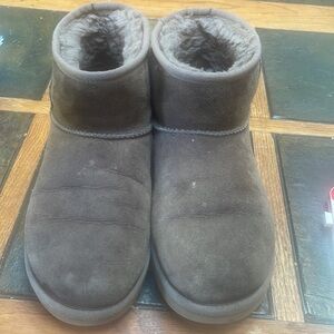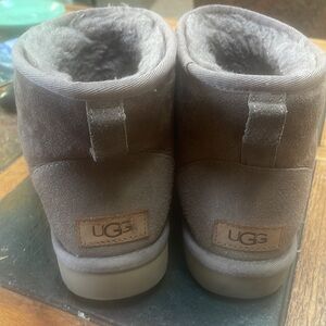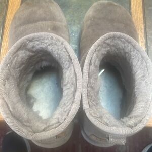 UGG Australia Classic Mini Boots Sheepskin Booties Stormy Gray Tan Size 8