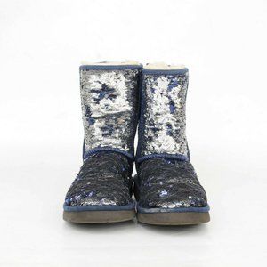 UGG Australia Classic Short Blue Sparkle Sequin Sherpa Boots Women's 7 1002765