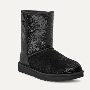UGG Australia "Classic Short Cosmos Sequins" Black Boots.