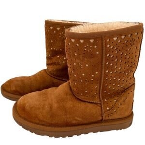 UGG Australia Classic Short Flora Perforated Leather Boots Size 8
