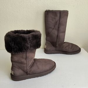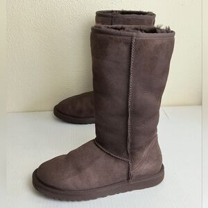 UGG Australia Classic Tall Boots Suede Brown Sheepskin Lining Size 6 Winter 5815
