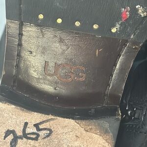 UGG Australia Conor Studded Black Leather & Shearling Moto Mid Calf Boots Size 9