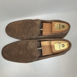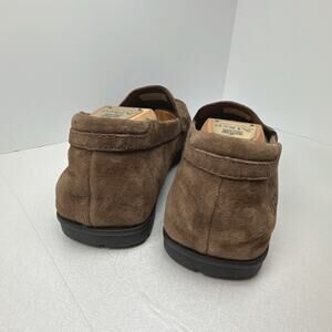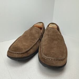 UGG Australia Men's Driving Loafers (S/N 3122), size 9.5 US. These classic slip-on shoes are crafted with a genuine Leather upper (appears as rich brown suede) and a soft Leather lining. The style features traditional moccasin stitching and a flexible, durable Rubber outsole. Perfect for comfortable, year-round casual wear or driving
