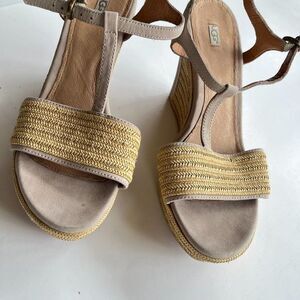 UGG Australia Fitchie Platform Wedge Sandals T-STRAP Oyster Tan beige Si…