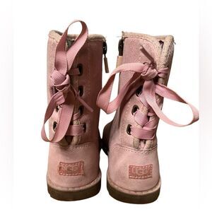 UGG Australia Girl Boots Pink Kids US Size 9 Bailey Back Laces Zip up