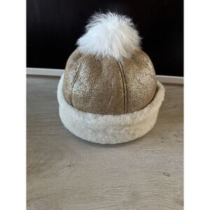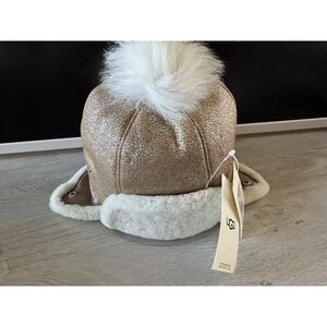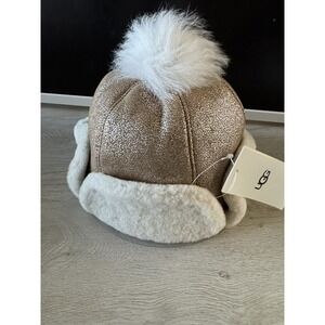 UGG Australia Girls Sheepskin Metallic Pom Pom Chestnut Trapper Hat 4 - 6 Y $145
