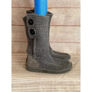Item Description: Pre-Owed Used, UGG Australia Girl's Gray Twisted Cable Over The Knee Style Boots US 4. These are in good condition, visible wear is present on the soles. There are scuffs/scratches from normal wear. Still, lots of life is left!