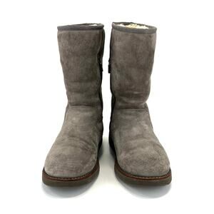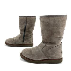 UGG Australia Gray Short Winter Boot Sz 6 Suede Wool Cold Weather Flat Mid-Calf