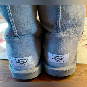 UGg Australia brand grey leather and shearling shorty boots with foam sole, women’s size 7