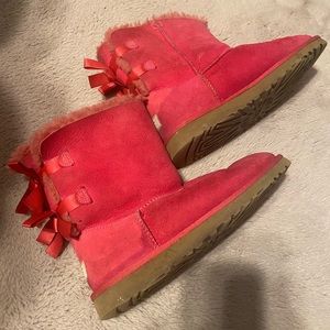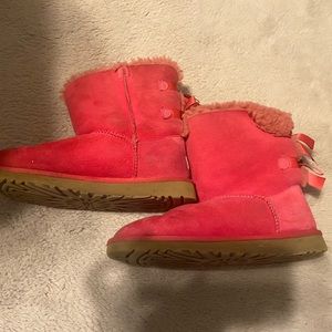 UGG Australia Hot Pink Bailey II Bow Boots Big Kids Sz 6 Shearling Suede Barbie