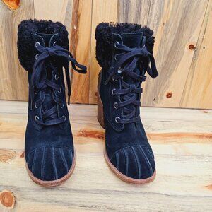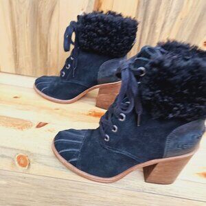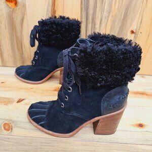 UGG JAXON BLACK FUR CUFF SUEDE BOOTS