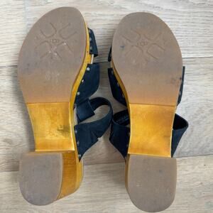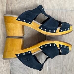 UGG Australia Jennie Black Leather Studded Boho Wooden Clog Sandals Size 9