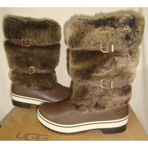 UGG Australia LILYAN Brown Waterproof Leather Sheepskin Boots Size US 6 NIB