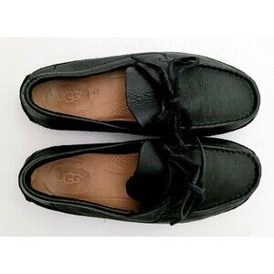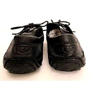 Ugg Men's moccasin loafer ,style Marlowe. sz 9. Made of soft black pebbled leather with a slip resistant rubber outer sole, lined in leather, no shearling. Great condition, clean, they look great.