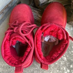 UGG Australia Neumel Samba Red Suede Boots Vibrant Minimalist Design NWOBSz-7. R