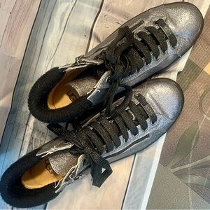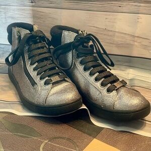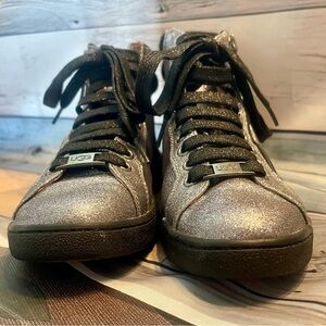 100% Authentic, EUC (Excellent Used Condition) UGG womens olive leather ankle sporty gunmetal glitter sparkle boots, size 7.5.