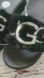 Black color with UGG  in white color. Size 6 in women's. Plaform style and open toes.