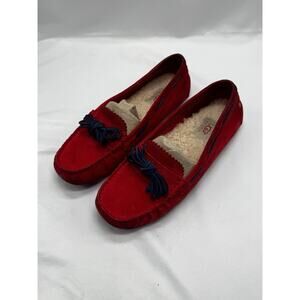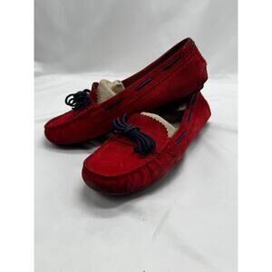 UGG Australia Red Suede Leather Sheepskin Lined Driving Moccasin Slippers 9