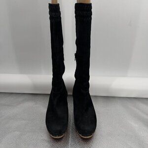 UGG Australia Rosabella Platform Black Suede Tall Wooden Heel Boots 9
