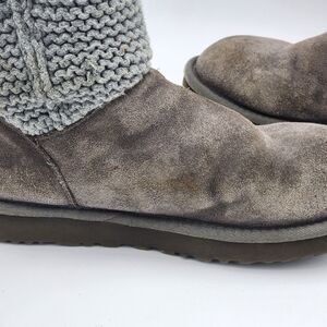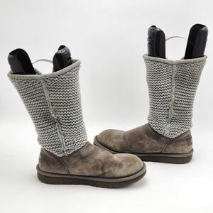 UGG Australia Shaina Knit Cuff Button Gray Slouch Boots in Size 8