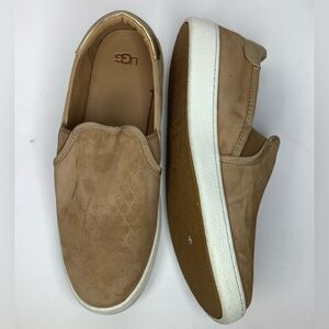 UGG Australia Shoes Tan/Gold Suede Leather Jass Sneakers Slip On Women Sz 10