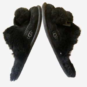 UGG Australia Slippers Slides Black Suede Sheepskin Style Hafnir
