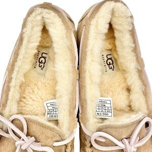 UGG Australia Slippers Womens Size 8 Sheepskin-Lined Leather Moccasin Tan